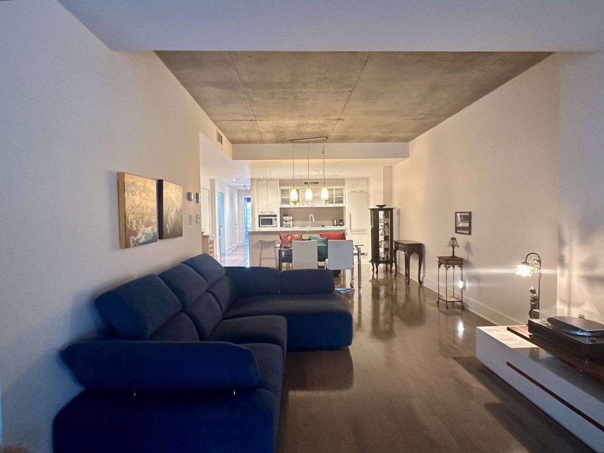 This stunning contemporary condo combines elegance and comfort in a highly sought-after complex in Montreal’s Southwest. Bright and thoughtfully designed, it stands out with modern finishes and exposed concrete ceilings that give it a refined urban style. The unit features two closed bedrooms, two full bathrooms, a spacious covered balcony, and a functional layout — ideal for professionals or a couple seeking a peaceful and well-located home.